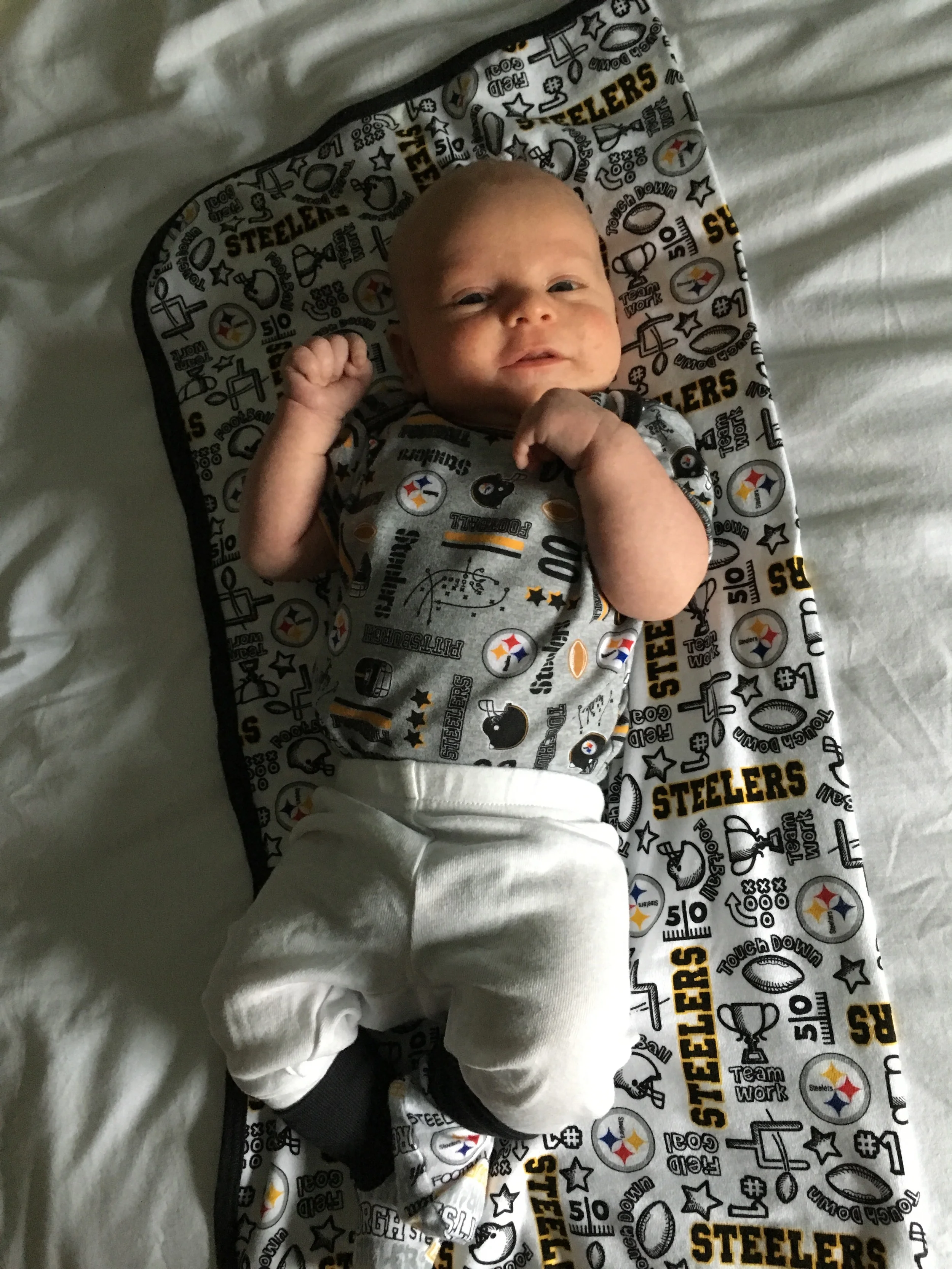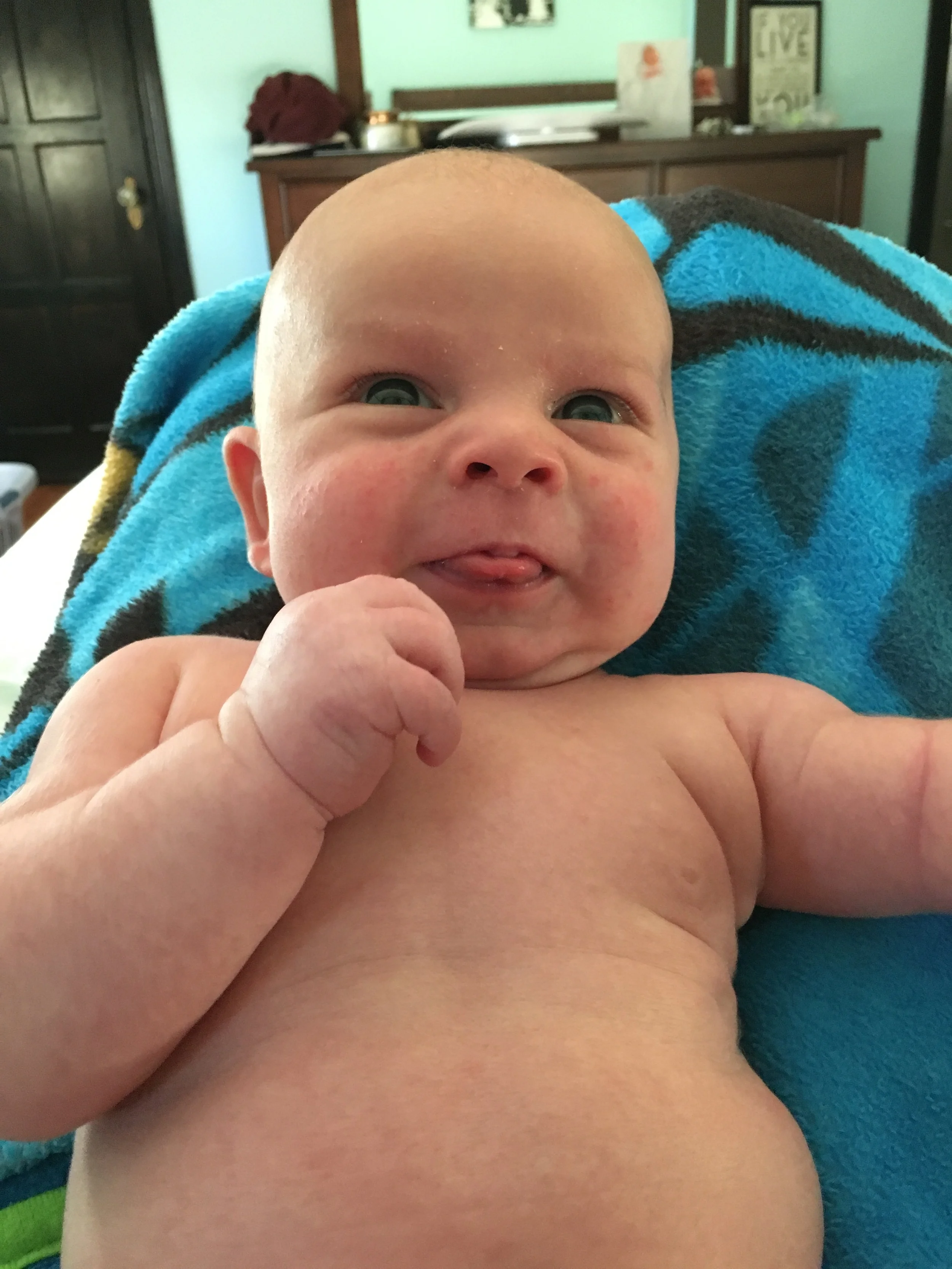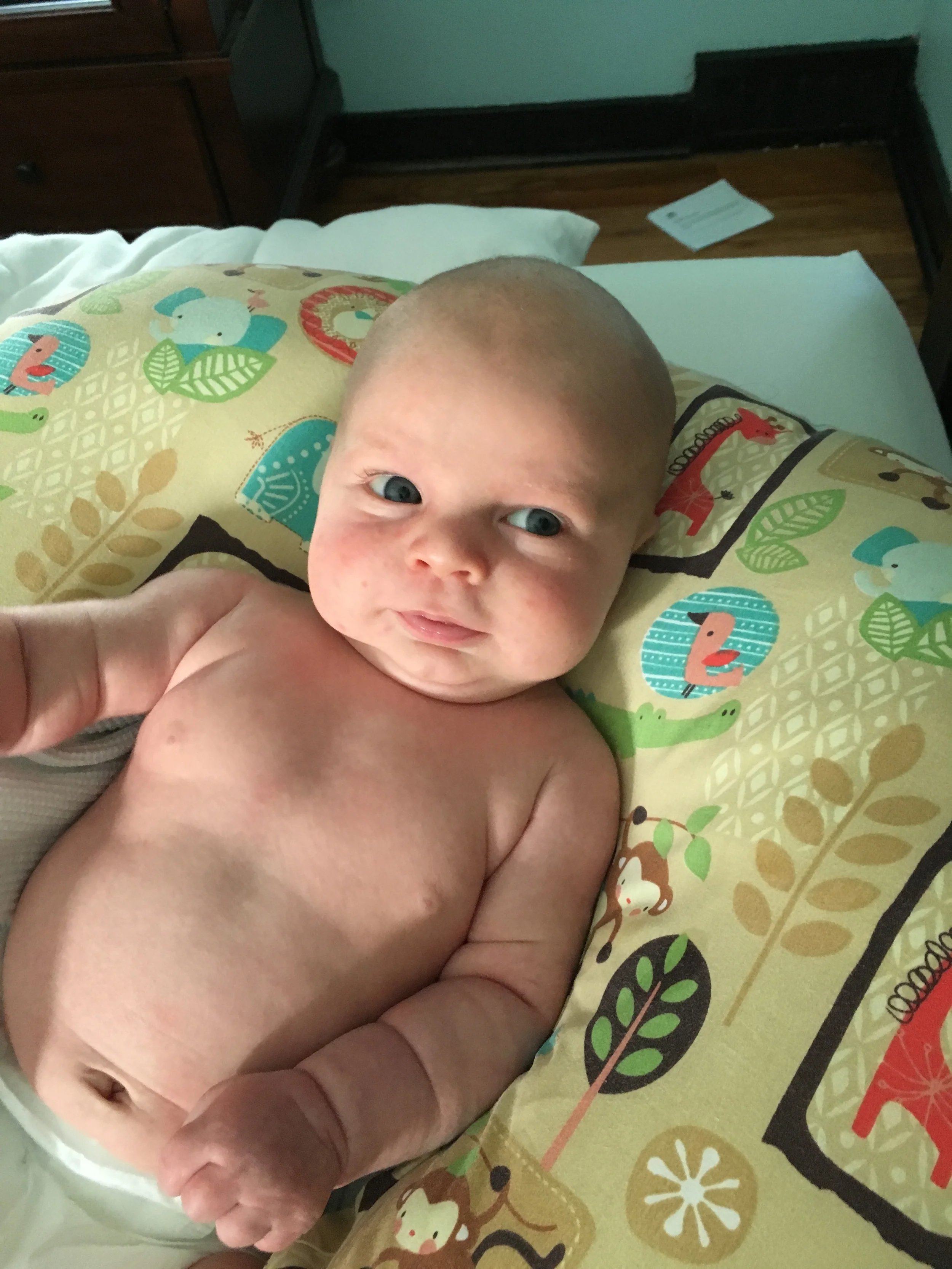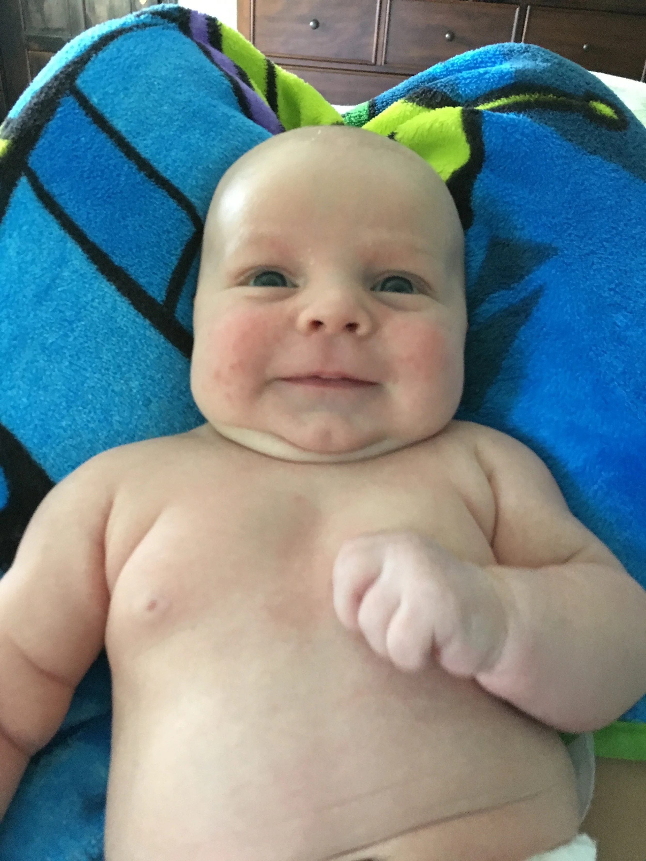 Two months have come and gone as fast as we were told they would. We have been able to slow down and enjoy this time with our son as we watch him figure out what his arms are and as he sleeps through the night. The happiness has flowed through the house especially this month as he began to smile and laugh when we engage with him. Thank you to our family for already showing so much love to Jon James and we look forward to our first holiday season together as a family.